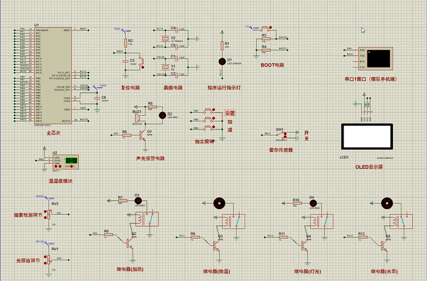 注意:部分实物元器件仿真中没有,仿真中会用其他工作原理相似的元件代替,这样可能导致实物程序和仿真程序不一样